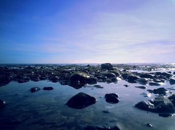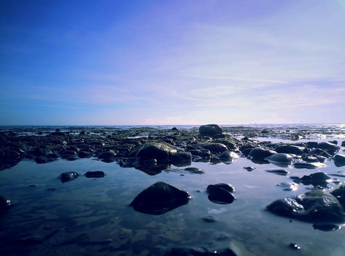 Keywords: baltic sea germany europe pelzerhaken beach coast blue stones rock water sky sea landscape nature bank mysterious quiet lake rest