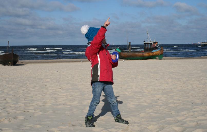 Keywords: baltic sea sea beach coast usedom lake water wind wave cutter fishing vessel fishing boat child dragons dragon rising ahlbeck nature blue sky clouds