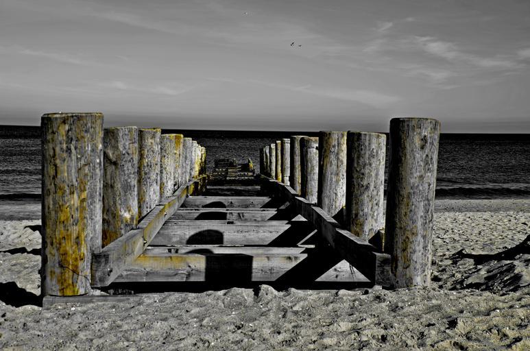Keywords: baltic sea web sea water coast lake beach jetty boardwalk wooden posts nature blue horizon mood winter overview scenic distant peaceful vision