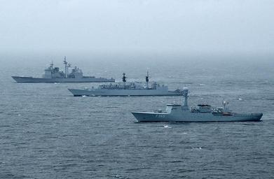 Keywords: BALTOPS 2002 - HDMS Hvidbjoernen, HMS Chatam, USS Cape St. George.jpg 020611-N-0872M-501 The Baltic Sea Jun 11 2002 -- The Danish HDMS Hvidbjoernen F 360 British HMS Chatam F 87 and U S guided missile cruiser USS Cape St George CG 71 cruise in formation during the joint combined exercise BALTOPS 2002 The United States and 11 other nations are participating in this year's exercise BALTOPS 2002 is intended to improve interoperability between allies and Partnership for Peace countries by conducting a peace support operation at sea including exercises in gunnery replenishment-at-sea undersea warfare radar tracking mine countermeasures seamanship search and rescue maritime interdiction operations and scenarios dealing with potentially real world crises U S Navy photo by Photographer's Mate 1st Class Martin E Maddock RELEASED http //www navy mil/view_image asp id 1747 http //www navy mil/view_image asp id 1747 http //www navy mil/management/photodb/photos/020611-N-0872M-501 jpg http //www navy mil/management/photodb/photos/020611-N-0872M-501 jpg US Navy Photographer's Mate 1st Class Martin E Maddock 2002-06-11 PD-USGov-Military-Navy May be available at http //www navy mil/view_image asp id 1747 http //www navy mil/view_image asp id 1747 PD-USGov-Military-Navy F360 Hvidbjørnen ship 1991 F360 USS Cape St George CG-71 HMS Chatham F87 BALTOPS 2002 Transferred by User heb June 2002 photographs |