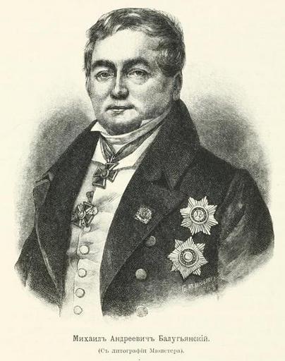 | Keywords: Balugjanskij (printing 1903).png  Балугьянский  ихаил Анд еевич 1749-1847 п офессо политической экономии Санкт-Пете бу гского педагогического института с 1804 года затем Санкт-Пете бу гского униве ситета  екто Санкт-Пете бу гского униве ситета статс-сек ета ь сенато ; к упная сила в области знаний и на педагогическом и политическом поп ищах России Balugyánszky Mihály Baludjanszky Mihály 1769 1847 jogász államtanácsos Ruszin volt Mihály Balugyánszky 1769-1847 ruthenischer ungarischer wissenschaftlicher Schriftsteller und Pädagoge später Senator und Vorstand der Kabinettskanzlei des Zaren Nikolaus I picture from Импе ато  иколай I Его жизнь и ца ствование Шильде  К vol 1 1903 p 433 http //www bibliophika ru/index php id 1237 signature Gr Ju B not full readable 1903 date of printing the lithography itself is much older PD-old File Balugjanskij Mikhail A jpg is an extract from this PD-old Mikhail Balugjanskij |