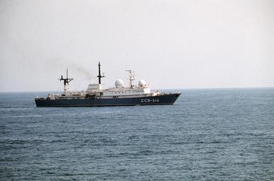| Keywords: Balzam-class general intelligence collector ship - Ocean Sarafi 85 - DN-ST-86-02553.JPEG en A starboard view of the Soviet Balzam-class general intelligence collector ship underway in international waters as United States Navy ships sail out from Norfolk Virginia at the beginning of NATO Exercise Ocean Safari '85 http //www defenseimagery mil/imagery html a search s DN-ST-86-02553 guid 2f8f6f2c041e9bd4e43b7f6a42d08b8bc1e28790 DN-ST-86-02553 - Defense Visual Information Center - U S Department of Defense DOD PH1 Jeff Hilton U S Navy Agust 28 1985 PD-USGov-Military-Navy Ocean Safari 85 Cold War Lira ship 1980 |