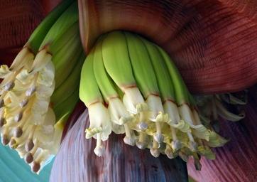 Keywords: banana blossom baby bananas green bunch growing flowering natural flora tropical fruit close up macro flowers dharwad india food