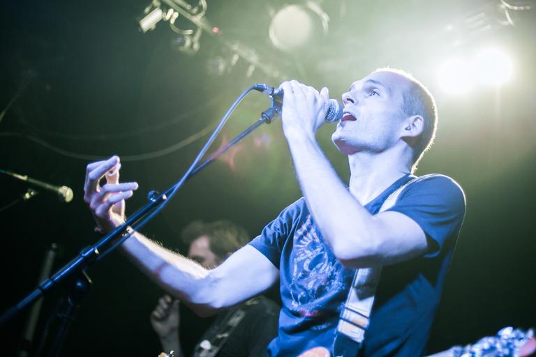 Keywords: band singer microphone micro music musician concert rock artists man live song sing unplugged show stage light