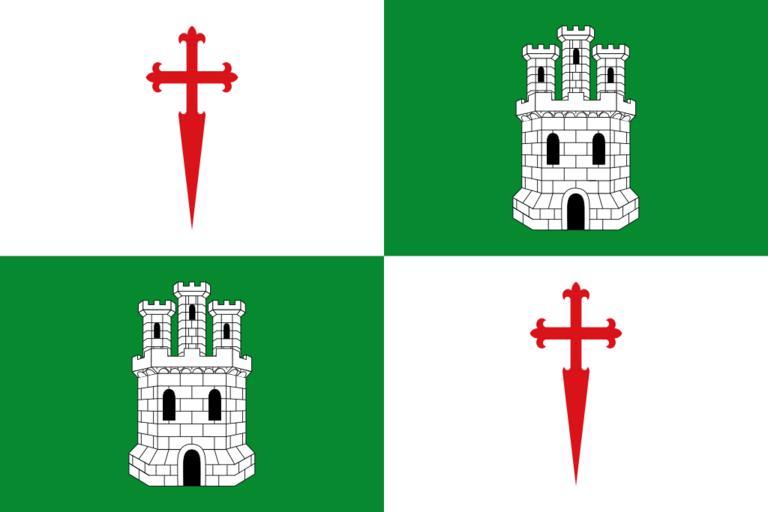 | Keywords: Bandera de Ontígola.svg Bandera de Ontígola Toledo España Bandera rectangular una vez y medio más largo que ancho 2 3 contracuartelado primero y cuarto blanco cargado con una cruz de Santiago y segundo y tercero verde con un castillo blanco mazonado de sable y aclarado de lo mismo Fuente D O C M nº 13 DE 23-02-1994 Pág 940 Own 02-05-2008 Digigalos PD DEFAULTSORT Ontígola SVG flags of Castile-La Mancha Flags of municipalities of the province of Toledo Ontígola | ||||