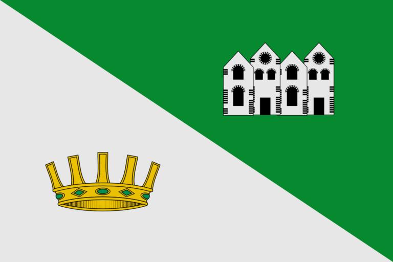 | Keywords: Bandera de Villanueva de Viver.svg es Bandera de proporciones 2 3 Partida por mitad en bajo A la primera mitad junto al asta de plata una corona radial de su color A la segunda mitad al vuelo de sinople un pueblo de plata aclarado y mazonado de sable https //www docv gva es/portal/portal/2002/08/23/pdf/doc/2002_9241 pdf DOGV núm 4320 de 23 08 2002 2012-01-25 own VaroPPO cc-zero Villanueva de Viver Flags of municipalities of the province of Castellón | ||||