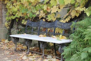 Keywords: bank autumn leaves rest