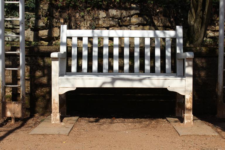 Keywords: bank park park bench wood seating furniture early summer mood white nature romantic atmosphere
