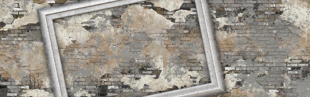 Keywords: banner header frame picture frame wall plaster old brittle outline corners ailing decay old building dilapidated ruin run down broken break up building structure transient facade masonry