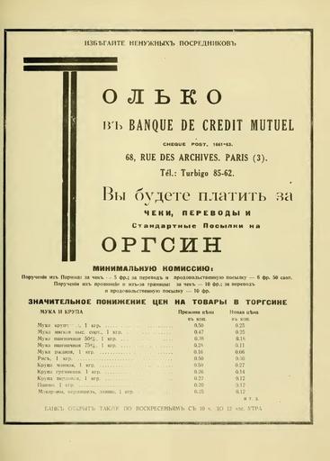 Keywords: BanqueTorgsin.jpg ru Реклама банка Banque de Credit Mutuel Пе еводы и посылки на То гсин Па ижский усский жу нал За улем N6 октяб ь 1933 http //www archive org/details/zarulemserialauv00andr Author 1933 Economy of the Soviet Union Advertisements in France Rue des Archives Paris 1933 advertisements PD-old
