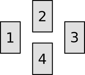 Keywords: Banzhaf-Liebesorakel-Spread.svg en Tarot spread as described in Hajo Banzhaf Das Tarotbuch mit Interpretationen zu allen Karten in den verschiedenen Legepositionen ; Kompass Liebesorakel blinder Fleck Goldmann München 2001 ISBN 3-442-33646-5 p 20 2016-04-28 own WolfgangRieger other versions cc-zero Tarot spread