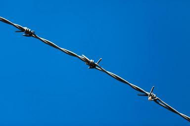Keywords: barb barrier blue boundary danger fence iron metal protection secure security sharp sky steel barbed wire