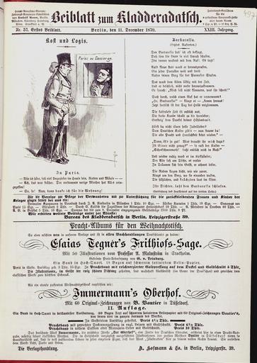 | Keywords: Barbarossa (Kladderadatsch).jpg Barbarossa In Kladderadatsch Humoristisch-satirisches Wochenblatt Berlin 23 1870 Seite 497 http //digi ub uni-heidelberg de/diglit/kla1870/0497 UB Heidelberg 1870 Kladderadatsch PD-old Kladderadatsch De Wikisource book leaflet Frederick I Holy Roman Emperor |