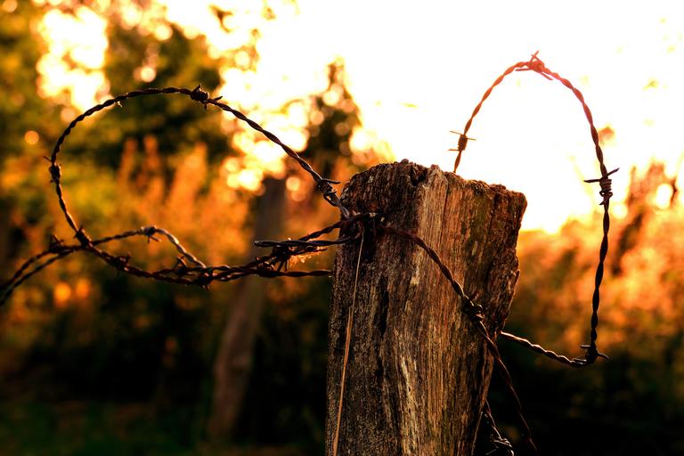 Keywords: barbed wire evening sunset farmland