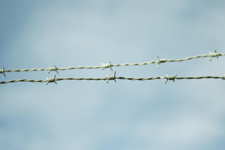 Keywords: barbed wire fence himmel blue