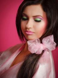 Keywords: barbie girl pink brunette woman barbie portrait bow in hair
