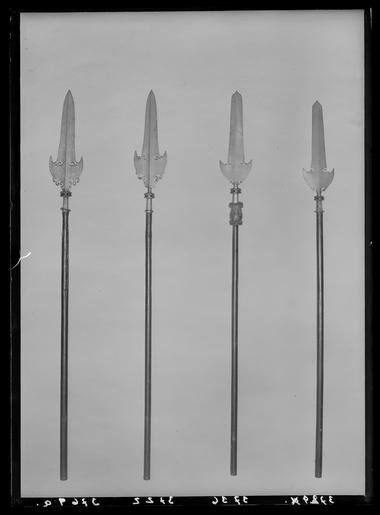 Keywords: Bardisan för drottning Kristinas drabanter m: 1646, tillverkad vid Jäders bruk - Livrustkammaren - 34789.tif Klinga med etsad och punsad dekor nästan helt bortnött på ena sidan årtalet 1646 synligt på bägge sidor liksom S i namnchiffer på ena sidan På den andra sidan är dekoren ifylld med tunna horisontella linjer riksvapnet omgivet av streckbård Nedtill på klingan en otydlig punsad dekor <br/><br/>Holk l 100 mm med tydlig etsad och punsad rankdekor <br/><br/>Brunmålat skaft av furu brunmålade skenor och skoning av stål 115 mm nedanför holken ett genomgående hål diam 10 mm runt kanterna saknas flisor original caption 1646 size mm 2075 size mm 500 klinga size mm 185 LRK Christina drottning av Sverige 1966 place of origin original filename LN_B02564_005444 42278 inventory number LRK 5670 34789 CC0 Bardisan för drottning Kristinas drabanter m 1646 tillverkad vid Jäders bruk - Livrustkammaren - 34789-negative tif <gallery caption Different images of same object > File Bardisan för drottning Kristinas drabanter m 1646 tillverkad vid Jäders bruk - Livrustkammaren - 17652 tif </gallery> Partisan weapon images from Livrustkammaren Media contributed by LSH dim-with multiple size templates Media contributed by LSH 2013-10 |