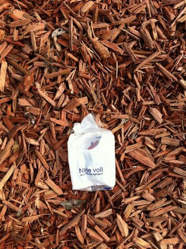 Keywords: bark mulch advertising handkerchief garbage nose full nose