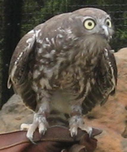 Keywords: Barking owl 2.jpg en The Barking Owl or Winking Owl Ninox connivens is a nocturnal bird species native to mainland Australia and parts of Papua New Guinea They are a medium-sized brown owl and have an extremely characteristic voice that can range from a barking dog noise to a shrill woman-like scream of great intensity Barking owls are often said to be the source to the myths and legends surrounding the Bunyip Own Demiurge11 2009-02-11 Ninox connivens captive |