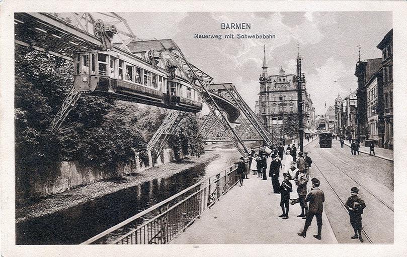 | Keywords: Barmen - Neuer Weg.jpg en Postcard undated ca 1914 Title Barmen - New way with monorail de Postkarte undatiert ca 1914 Titel Barmen - Neuer Weg mit Schwebebahn private collection of Wolfgang Sauber Xenophon Creator Unknown 2008-09-23 PD-1923 anonymous-EU Postcards of Wuppertal Historical images of Wuppertal Schwebebahn Historical images 1914 photographs of Wuppertal Black and white photographs of Wuppertal Black and white photographs of Germany in the 1910s | ||||