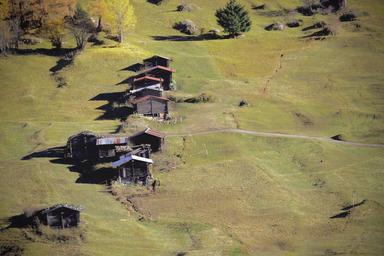 Keywords: barn alp alm agriculture mountains switzerland idyllic meadow