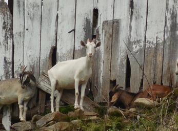 Keywords: barn goat animal farm livestock rural cattle pet wooden mammal hairy breed hay hoof beast furry nose stall bleat stable nanny white brown black beard nature countryside horns