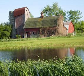 Keywords: barn pond water dilapidated farm rural agriculture country landscape rustic countryside outdoors architecture old