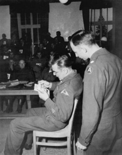 | Keywords: Barnett and Denson.jpeg  en Capt John Barnett testifies to the authenticity of photos taken when his troops overran the Dachau concentration camp at the trial of former camp personnel and prisoners from Dachau USHMM courtesy of National Archives and Records Administration College Park Miller 1945-11-24 William Dowdell Denson 1913-1998 U S Chief Prosecutor of Nazi war crimes at the concentration camp trials of Dachau Mauthausen Flossenbuerg and Buchenwald held in Dachau Germany Born and raised in Birmingham Alabama Denson came from a family that had distinguished itself both in military and judicial service After graduating from the U S Military Academy at West Point in 1934 Denson attended Harvard Law School finishing in 1937 He then returned to Birmingham where he started a private law practice In 1942 Denson was invited back to West Point to serve as both a law instructor and the Assistant Staff Judge Advocate to the Superintendent of the U S Military Academy In January 1945 Denson accepted the position of Judge Advocate General JAG in Europe and was assigned to Third Army headquarters in Germany While stationed in Freising Germany Denson read about the liberation of Dachau in the army newspaper Stars and Stripes After taking part in more than 90 trials against Germans who had committed atrocities against downed American pilots Denson was promoted to lieutenant colonel and in August 1945 was called to serve as the Chief Prosecutor for the U S government at the Dachau concentration camp war crimes trial As a result of his success in handling the trial he was asked to serve as chief prosecutor for a series of concentration camp trials including Mauthausen Flossenbuerg and Buchenwald When these trials came to an end in early 1947 Denson returned to Birmingham but soon moved to Washington DC to accept a position as co-chief legal counsel to the Atomic Energy Commission In 1949 Denson married Countess Constance von Francken-Sierstorpff of Southampton Long Island with whom he had three children In 1958 the family relocated to New York where Denson went to work for a major law firm Later in 1980 he became senior litigator in a small firm in Mineola N Y Denson remained in New York until his death at the age of 85 Sources Denson William Justice in Germany Memories of the Chief Prosecutor Mineola N Y Meltzer Lippe et al P C 1995; Greene Joshua Justice at Dachau New York Broadway Books 2003 pp 17-20; 320-356 The Dachau concentration camp trial opened on November 2 1945 in Dachau Germany Forty individuals who had participated in the operation of the Dachau concentration camp were charged with the murder and mistreatment of foreign nationals imprisoned there Among those charged were Martin Gottfried Weiss the camp commandant from 1942-1943; Dr Klaus Karl Schilling an SS physician who was brought to Dachau to find a method of immunizing people against malaria; and three former prisoners The trial lasted from November 15 to December 13 1945 with seventy witnesses called for the prosecution and fifty witnesses called for the defense All forty defendants were found guilty with thirty-six being sentenced to death by hanging including Weiss and Schilling one sentenced to hard labor for life and three sentenced to hard labor for ten years A few of the sentences were reduced after a review board determined the defendants were involved to a lesser degree than originally believed but most were upheld Those sentenced to death were hanged on May 28-29 1946 at Dachau PD-USGov Dachau trial Mineola New York |