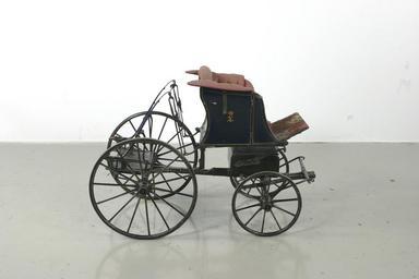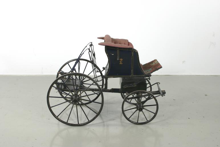 Keywords: Barnvagn faetong, höger sida - Livrustkammaren - 39596.tif Öppen lekvagn för barn av faeton-typ med ensitsig korg över främre hjulaxeln Förvaringslåda under korgen och även i sitsen Vagnen är blåmålad med gula och svarta ränder Vagnskorgen är ensitsig med röd djuphäftad ripsklädsel och lös sittdyna På fotbrädan finns en blommig matta Korgens tvärsnitt är fyrkantigt nedre hörnen utsvängda På sidorna i guld med rött målat L under kronprinskrona Sidoväggarnas främre delar har två gångjärn kan öppnas bakåt <br/><br/>Fjädrar under korgen fram baktill längre remmar fästade vid S-fjädrar från bakvagnen Över bakre axeln sitter en läderklädd lakejbräda Större bakhjul med 14 ekrar 7 lötar Framhjul med 10 ekrar 4 lötar Vridbar framaxel En mittbom som är gaffelformad baktill original caption barnvagn faetong höger sida decade 1850 wood Färg röd material trä - steel - leather size mm 1350 800 880 LRK Louise av Sverige drottning av Danmark Brödrafolkens väl 2005 place of origin original filename lm_dig0661 52180 inventory number LRK 15613 39596 CC-BY-SA Samuel Uhrdin <gallery caption Different images of same object > File Lekvagn high flyer phaeton för prinsessan Lovisa - Livrustkammaren - 52751 tif File Barnvagn faetong vänster sida - Livrustkammaren - 31036 tif File Barnvagn faetong snett framifrån - Livrustkammaren - 48154 tif File Lekvagn high flyer phaeton för prinsessan Lovisa - Livrustkammaren - 61312 tif File Barnvagn faetong framifrån - Livrustkammaren - 65276 tif File Barnvagn faetong bakifrån - Livrustkammaren - 73838 tif File Barnvagn faetong snett framifrån m överdragsskydd - Livrustkammaren - 56715 tif </gallery> Samuel Uhrdin Toys Media contributed by LSH unmatched material Color images from Livrustkammaren Media contributed by LSH 2013-10