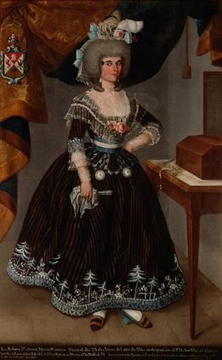 | Keywords: Barreda - Juana María Romero.jpg Artwork Ignacio María Barreda 1750-1800 1794 Oil on canvas Institution Chapultepec Castle http //www esteticas unam mx/revista_imagenes/dearchivos/dearch_pineda01 html Foto Archivo Fotográfico Manuel Toussaint IIE other versions PD-old-100 Ignacio María Barreda Paintings in the Chapultepec Castle Museo Nacional de Historia 1794 portrait paintings 18th-century oil portraits of standing women at full length 1794 18th-century portrait paintings in Mexico 1794 18th-century portraits with coat of arms 1794 Drapery in portrait paintings 1794 Female shoes in portrait paintings 1794 Portrait paintings of men with left hand on hip 1794 Portrait paintings of women with flowers on clothing 1794 Portrait paintings of women with hair flowers 1794 Portraits with fans 1794 Tassels in portrait paintings 1794 |