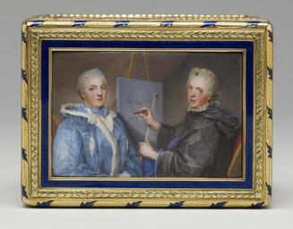 Keywords: Barriere - Snuffbox with the Family of Louis XV - Walters 57136 - Top.jpg The box is decorated with images of the children of Louis XV and Queen Marie Leszczynska Louise-Elizabeth and Marie-Adelaide on the cover ; Victoire-Louise and Sophie-Philippine on the base ; Louis the dauphin with a kite on the front ; Louise-Marie holding a battledore and shuttlecock for a racquet game on the left end ; and Philippe duke of Anjou blowing bubbles on the right end As Philippe died in 1733 the images must be based on earlier portraits between 1761 1762 gold painted enamel cm 5 6 3 accession number 57 136 22517 Zoé Victoire Talon Comtesse du Cayla 1785-1852 Paris Maurice Kann Paris Charles J Wertheimer Sale Christie's London May 9 1912 no 14 Jacques Seligmann Paris by purchase Henry Walters Baltimore after 1912 by purchase Walters Art Museum Henry Walters Acquired by Henry Walters after 1912 Objects of Vertu Precious Works of the Eighteenth Century The Walters Art Gallery Baltimore 1984 Vive la France French Treasures from the Middle Ages to Monet The Walters Art Gallery Baltimore 1999-2000 place of origin France Walters Art Museum license Barriere Jeweller J J Dailly Snuffboxs in the Walters Art Museum Portrait miniatures in the Walters Art Museum 18th-century portrait paintings in the Walters Art Museum 1761c House of Bourbon 1761c Marie Adélaïde of France 1761c 18th-century portrait paintings of women at half length 1761c Portraits of sisters 1761c Gold boxes Princess Louise Élisabeth of France Vive la France French Treasures from the Middle Ages to Monet |