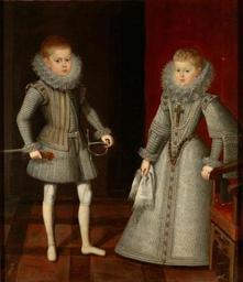 Keywords: Bartolomé González y Serrano 004.jpg Artwork Creator Bartolomé González y Serrano 1612 Oil on canvas de 137 × 118 cm Rahmenmaße 153 × 133 5 x 7 cm Institution KHM Inv -Nr GG 3200 http //bilddatenbank khm at/viewArtefact id 2319 de Stempel/Zeichen Rückseite roter Stern Provenienz Alter Kaiserlicher Besitz; 1772 in der Galerie nachweisbar; Abgebildete Personen Infant Carlos Sohn des Philipp III von Habsburg Spanien Kaiserin Maria Anna Tochter des Philipp III von Habsburg Spanien other versions PD-old-100 DEFAULTSORT 1612;Maria Anna;Carlos of Spai Bartolomé González y Serrano Paintings by Bartolomé González y Serrano in the Kunsthistorisches Museum Maria Anna of Spain Infante Carlos of Spain 1610s paintings in Austria 1610s portrait paintings from Spain M 1612 oil on canvas paintings Portrait 1612 portrait paintings M 17th-century family portraits of royalty 17th-century oil on canvas paintings in Austria 17th-century oil portraits of children at full length 17th-century portrait paintings in the Kunsthistorisches Museum Armchairs in portrait paintings Children in Spanish portraits Girls looking at viewer in art Male portraits holding glove Male white shoes in portrait paintings One-to-one in art Portrait paintings of men holding swords Portrait paintings of siblings Portrait paintings of standing children Portrait paintings of standing women with hands resting in armchairs Portrait paintings of women holding handkerchiefs Portraits wearing cross necklaces Portraits with 2 persons Ruffs in art Spanish saya court dress