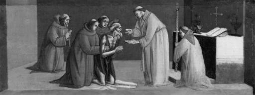 | Keywords: Bartolomeo di Giovanni - Group of Three Panels - Last Communion of St Jerome, The Man of Sorrows, The Death of St Jerome - Walters 37428.jpg Walters Art Museum artwork Q18748404 Zeri Italian paintings in the Walters Art Gallery 65 102-103 ca 1500 Renaissance oil on panel Painted surface H of the Last Communion of St Jerome 7 5/16 x W 18 1/2 x D 11/16 in 18 6 x 47 x 1 7 cm ; Painted surface H of the Man of Sorrows 7 1/8 x W 18 1/8 x D 11/16 in 18 1 x 46 1 x 1 7 cm ; Painted surface H of the Death of St Jerome 7 3/16 x W 18 9/16 x D 9/16 in 18 3 x 47 1 x 1 5 cm accession number 37 428 30693 Don Marcello Massarenti Collection Rome date and mode of acquisition unknown 1881 catalogue nos 178 179 180 1897 catalogue nos 282 283 284 as Melozzo da Forlì Henry Walters city Baltimore Walters Art Museum Henry Walters Acquired by Henry Walters with the Massarenti Collection 1902 place of origin Florence Italy Walters Art Museum license 2D Italian Renaissance paintings in the Walters Art Museum Bartolomeo di Giovanni Media contributed by the Walters Art Museum needs category review Paintings of Saint Jerome |
