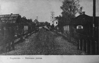 Keywords: Barysaŭ, Vižynskaja-Mienskaja. Барысаў, Віжынская-Менская (1914).jpg Ба ысаў вуліца енская ад ск ыжаваньня зь Віжынскай Целеш В Га ады Бела усі на ста ых паштоўках н Бела усь 2001 author < 1918 PD-old History of Barysaŭ