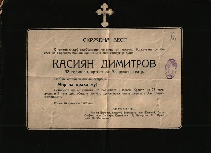 Keywords: BASA-1154K-1-252-18-Kasiyan Dimitrov Obuituary.JPG ек олог на Касиян Димит ов Kasiyan Dimitrov Obuituary Կասիյան Դիմիտ ովի մահախոսականը 1922-12-26 author ЦДА 1154K Иван Попов 1 252 18 credit line exhibition history BASA Спасими <span class signature-talk >talk</span> 2015-04-17 other versions Anonymous-EU Obituaries of Bulgaria Kasiyan Dimitrov 1922 obituaries