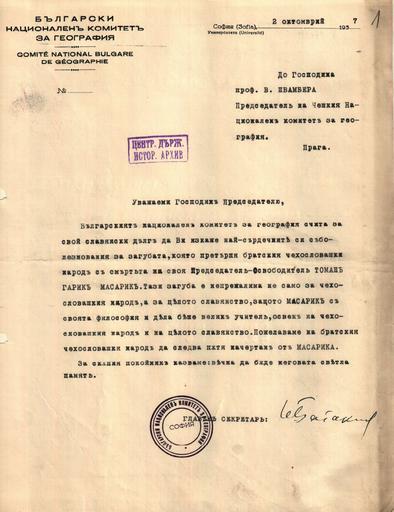 | Keywords: BASA-1524K-1-27-1-Bulgarian National Committee for Geography.JPG Писмо от Бълга ския национален комитет за геог афия до п едседателя на Чешкия национален комитет за геог афия по повод смъ тта на Томаш аса ик Letter from the Bulgarian National Committee for Geography to the Czech National Committee for Geography 1937-10-02 unknown ЦДА 1524K Бълга ски национален комитет за геог афия 1 27 1 credit line exhibition history BASA Спасими <span class signature-talk >talk</span> 2015-12-04 other versions Anonymous-EU Bulgarian National Committee for Geography |
