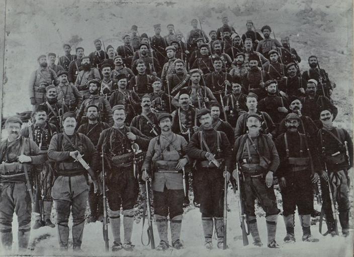 Keywords: BASA-1935K-1-60-7-IMARO.jpg Снимка на сбо ните македонски чети п и пеще ата Капе к ай с К ушево Се ско а пъ вия ед е Деми хиса ската чета Гео ги Бажда ов четвъ ти от ляво надясно ; на пети ед пъ вият от ляво надясно Яне Сандански; на седми ед Пейо Яво ов вто и от дясно наляво наляво от него Гоце Делчев IMARO 02 1903 author ЦДА 1935K Гео ги Бажда ов 1 60 7 credit line exhibition history Bulgarian Archives State Agency date other versions Anonymous-EU IMARO Georgi Bazhdarov Gotse Delchev Peyo Yavorov Yane Sandanski