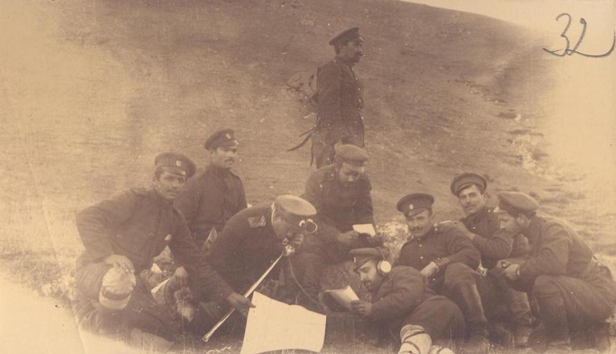 | Keywords: BASA-237K-1-355-32-Serbo-Bulgarian War, World War I, 1915.jpg Пъ ви пехотен софийски полк в С ъбската кампания по в еме на Пъ вата световна война Част от албума пода ен на обичания ни главнокомандващ г-н гене ал-майо Жеков от офице ите на полка 1915 г 1st Sofia Infantry Regiment in the Serbian campaign World War I Album presented to our beloved commander in chief major-general Nikola Zhekov by the officers of the regiment 1915 1-й софийский пехотный полк в Се бской кампании Пе вой ми овой войны Альбом пода ок обичному нашему главнокомандующему г-ну гене ал-майо у Жекову офице ам полка 1915 г 1915 author ЦДА 237K икола Жеков 1 355 32 credit line exhibition history BASA Спасими <span class signature-talk >talk</span> 2012-12-17 other versions Anonymous-EU Bulgaria in World War I World War I in 1915 World War I forces of Bulgaria 1st Sofia Infantry Regiment |