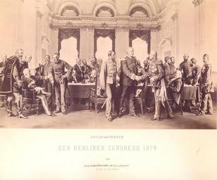 | Keywords: BASA-600K-1-1866-10-Der Berliner Congress, 1878.jpeg مؤتمر برلين date 1878 07 13 Berlin konqresi 1878 07 13 Бе лінскі канг эс 1878 07 13 x-old Бэ лінскі канг эс 1878 07 13 Бе лински конг ес 1878 07 13 Berlinski kongres 1878 07 13 Congrés de Berlín 1878 07 13 Berlínský kongres 1878 07 13 Berlinerkongressen 1878 07 13 Der Kongreß zu Berlin - Schlußsitzung am 13 Juli 1878 Congress of Berlin 1878 07 13 Kongreso de Berlino 1878 07 13 Congreso de Berlín de 1878 07 13 Berliinin kongressi 1878 07 13 Congrès de Berlin 1878 07 13 Congreso de Berlín de 1878 07 13 קונגרס בר ין 1878 07 13 Berlinski kongres 1878 07 13 Berlini kongresszus 1878 07 13 Բեռլինի կոնգ ես 1878 07 13 Congresso di Berlino 1878 07 13 ベルリン会議 1878年 1878 07 13 ბერლი ის კ გრესი 1878 07 13 Бе лин конг есі 1878 07 13 Бе лински конг ес 1878 07 13 Congres van Berlijn 1878 07 13 Berlin-kongressen 1878 07 13 Kongres berliński 1878 07 13 Congresso de Berlim 1878 07 13 Congresul de la Berlin 1878 07 13 Бе линский конг есс 1878 07 13 Berlinski kongres 1878 07 13 Berlínsky kongres 1878 07 13 Berlinski kongres 1878 07 13 Kongresi i Berlinit 1878 07 13 Бе лински конг ес 1878 07 13 Berlinkongressen 1878 07 13 Бе лінський конг ес 1878 07 13 年柏林 議 Бе линският конг ес от 1878 г Албум със снимки на Бисма к издаден по случай 80-годишнината му в Бе лин 1895 г Хайн их Ка л фон Хайме ле Авст о-Унга ия Алойс Г аф Ка оли Авст о-Унга ия Едуа до до Лоней Италия Александъ Го чаков Русия Уилиям Ан и Уадингтон Ф анция Бенджамин Диз аели Англия Йозеф а ия фон Радовиц п едставител Ге мания Хлодвиг цу Хохенлое-Шилингсфю ст Ге мания Луиджи Ко ти Италия де ун п отоколант Ф анция Сен Валие Ф анция Пол Деп и Ф анция Ба он д'Уб и Русия Анд аши Авст о-Унга ия Лота Бухе Ге мания Ото фон Бисма к Ге мания Пьотъ Шувалов Русия Бе нха д Е нст фон Бюлов Ге мания Ф ид их фон Холщайн Ге мания о иц Буш ге мански публицист Хе бе т Бисма к сек ета на баща си Садуллах бей Османска импе ия Одо Ръсел Великоб итания Робе т Гаскойн-Сесил Великоб итания Александъ -паша Ка атеодо и Османска импе ия ехмед паша Османска импе ия Auf dem Gemälde wird die abschließende Sitzung des Berliner Kongresses am 13 Juli 1878 in der Reichskanzlei dargestellt wobei die Komposition die damalige Mächtekonstellation ausdrückt Abgebildet v l n r von Haymerle Károlyi de Launay Gortschakow sitzend Waddington im Hintergrund Disraeli Gortschakow legt seine Hand auf Disraelis Arm von Radowitz im Mittelgrund hinter dem Tisch sitzend zu Hohenlohe-Schillingsfürst im Hintergrund stehend Corti ebenso Graf de Moun halb verdeckt im Hintergrund Paul d'Oubril im Mittelgrund hinter dem Tisch sitzend schreibend de Saint-Vallier im Hintergrund Desprey ebenso Gyula Andrássy im Vordergrund Bucher fast verdeckt im Hintergrund Otto von Bismarck zentral von Holstein im Hintergrund Busch im Hintergrund Herbert von Bismarck fast verdeckt im Hintergrund Schuwalow im Vordergrund Handschlag mit Bismarck Sadullah Bey im Hintergrund Russell ebenso von Bülow sitzend Salisbury Carathéodori und Mehmed Ali Pascha Das Gemälde wurde am 22 März 2005 im Festsaal des Berliner Rathauses vom Berliner Bürgermeister Klaus Wowereit enthüllt nachdem die Stiftung Stadtmuseum das 1992 restaurierte Bild der Senatskanzlei überlassen hat 124 Jahre zuvor fand die erste Enthüllung des Gemäldes statt denn es hing auch von 1881 bis 1945 im Festsaal 1881 Creator Anton von Werner oil on canvas cm 360 615 ЦДА 600К Константин Стоилов 1 1866 10 credit line exhibition history BASA Спасими <span class signature-talk >talk</span> 2014-09-09 other versions PD-old-auto 1915 Anton von Werner Rotes Rathaus Alexander Mikhailovich Gorchakov William Henry Waddington Benjamin Disraeli 1st Earl of Beaconsfield Charles Raymond de Saint-Vallier Chlodwig zu Hohenlohe-Schillingsfürst Gyula Andrássy Ion Brătianu Josef Maria von Radowitz Mehmed Ali Pasha Otto von Bismarck in 1878 Pavel Petrovich Ubri Heinrich von Haymerle 1881 paintings 19th-century history paintings 19th-century oil on canvas paintings in Germany 19th-century paintings of building interiors Congress of Berlin Group paintings of men Handshakes in art Imperialism People sitting at tables in art |