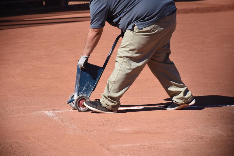 Keywords: baseball field sports field baseball diamond athletics chalk dirt working