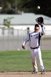 Keywords: baseball player catch sport ball game uniform baseball player field athlete summer competition grass play action male infield dirt glove standing focus concentration pop up outdoors