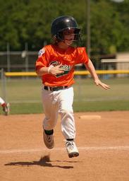 Keywords: baseball runner little league player field helmet running base ballpark infield game competition