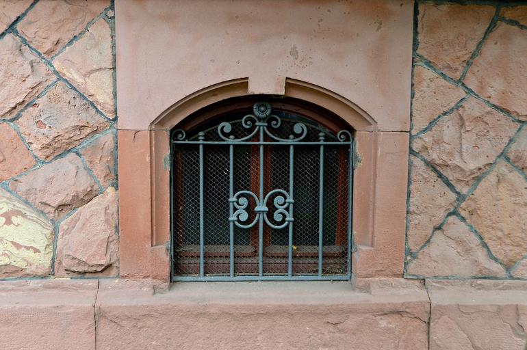 Keywords: basement lattice window art nouveau building heidelberg structure detail record basement bars architecture burglary iron railings grid sand stone material collection weststadt