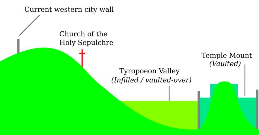 | Keywords: BasicJerusalemCrossSection.svg en Basic cross-section of Jerusalem showing Church of the Holy Sepulchre Tyropoeon Valley Temple_Mount and old city walls Also showing artificial platform for the temple mount in turquoise and valley infill/bridges/etc olive Heights based on this contour map - http //www ldolphin org/moriah gif along the horizontal line from the words 'Temple Mount' Vertical scale may have been accidentally stretched in relation to horizontal scale 2011-08-05 own based on this file User Adelbrecht/attribution Uploaded with UploadWizard Geography of Jerusalem Cross sections |