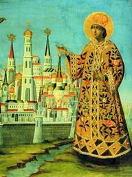 | Keywords: Basil the Fool and tsarevich Dmitriy (18th century, GIM) - detail.jpg Св ца евич Димит ий Ф агмент иконы Святые Димит ий Угличский и Василий Блаженный на фоне осковского К емля Кон XVIII в ГИ http //www liveinternet ru/users/bahit/rubric/4328650/ XVIII в Creator Unknown 18th-century icons in Moscow State Historical Museum Tsarevitch Dmitriy in icons Icons with Moscow Kremlin 18th-century icons of Russia Saint Basil's Cathedral in art Basil Fool for Christ Files uploaded by Shakko from various sources PD-Art |