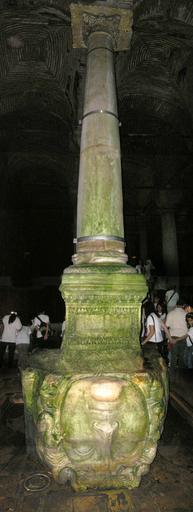 Keywords: Basilica Cistern Constantinople 2007 011.jpg Pillar with the head of medusa as its basis located at Basilica Cistern in Istanbul Own 2007-07 Gryffindor Upside down Gorgoneion in the Basilica Cistern