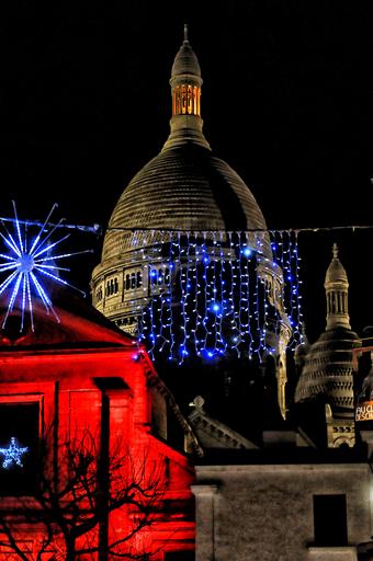 Keywords: basilica sacré-coeur montmartre christmas decoration night colors dome