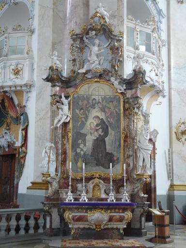 Keywords: Basilika Vierzehnheiligen 010.JPG Die Basilika Vierzehnheiligen bei Bad Staffelstein im Landkreis Lichtenfels ist eine Wallfahrtskirchen in Oberfranken <br>Side altar on the right of the main altar Basilica of the Fourteen Holy Helpers Bad Staffelstein near Bamberg in Bavaria Germany Own Mattana 2009-04-16 Images by Mattana-Bamberg Germany Baroque altars in Basilika Vierzehnheiligen |