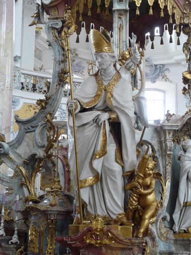 Keywords: Basilika Vierzehnheiligen 017.JPG Altar of the Vierzehnheiligen Die Basilika Vierzehnheiligen bei Bad Staffelstein im Landkreis Lichtenfels ist eine Wallfahrtskirchen in Oberfranken <br>A statue of one of the saints on the Altar of the Fourteen Holy Helpers Basilica of the Fourteen Holy Helpers Bad Staffelstein near Bamberg in Bavaria Germany Own Mattana 2009-04-16 Images by Mattana-Bamberg Germany Fourteen Holy Helpers in Basilika Vierzehnheiligen |