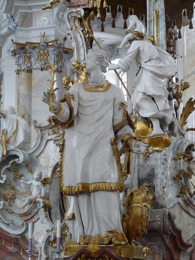 Keywords: Basilika Vierzehnheiligen 018.JPG Altar of the Vierzehnheiligen Die Basilika Vierzehnheiligen bei Bad Staffelstein im Landkreis Lichtenfels ist eine Wallfahrtskirchen in Oberfranken <br>A statue of one of the saints on the Altar of the Fourteen Holy Helpers Basilica of the Fourteen Holy Helpers Bad Staffelstein near Bamberg in Bavaria Germany Own Mattana 2009-04-16 Images by Mattana-Bamberg Germany Fourteen Holy Helpers in Basilika Vierzehnheiligen |